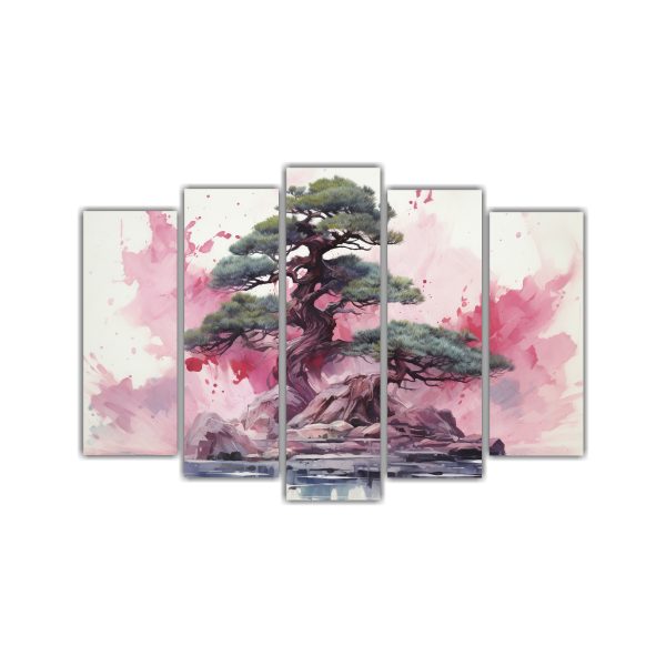 Pintura Acuarela Abstracta árbol Bonsái Rosa Colores Elegantes