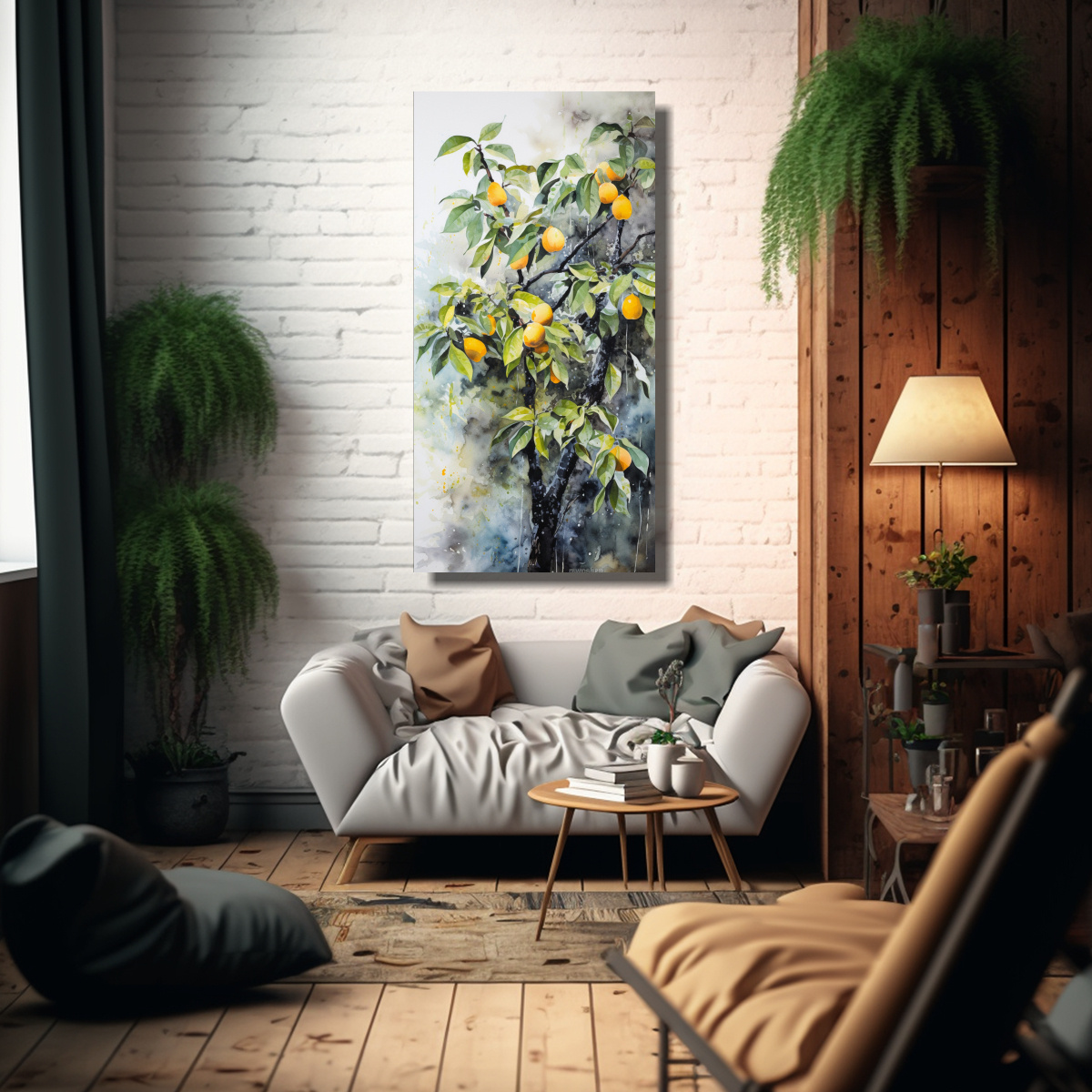Esta pintura acuarela abstracta colores árbol mango es perfecta para decorar espacios modernos y minimalistas, como salas de estar, comedores o dormitorios Recomendamos colocarla sobre una pared blanca o de tonos neutros para que resalte al máximo y se convierta en el centro de atención Combínala con muebles de líneas rectas y accesorios en tonos plateados o grises para lograr una estética contemporánea y elegante