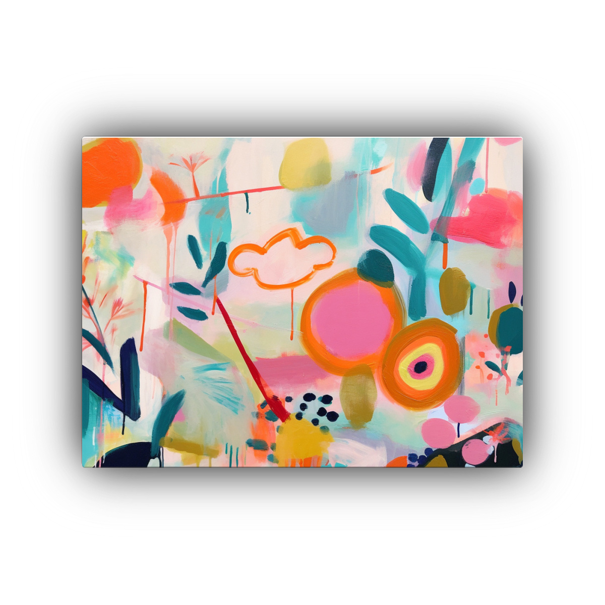 Este cuadro abstracto en acuarela con diseños coloridos es ideal para colocar en el área de la sala de estar, sobre un sofá de tonos neutros o en una pared blanca, creando un punto focal llamativo que realzará la elegancia y la armonía de tu espacio