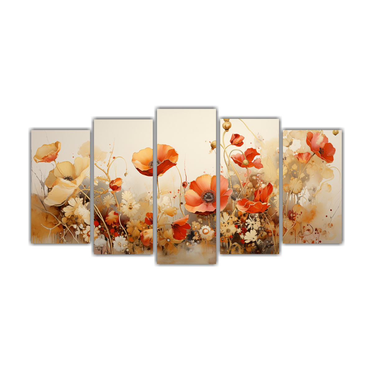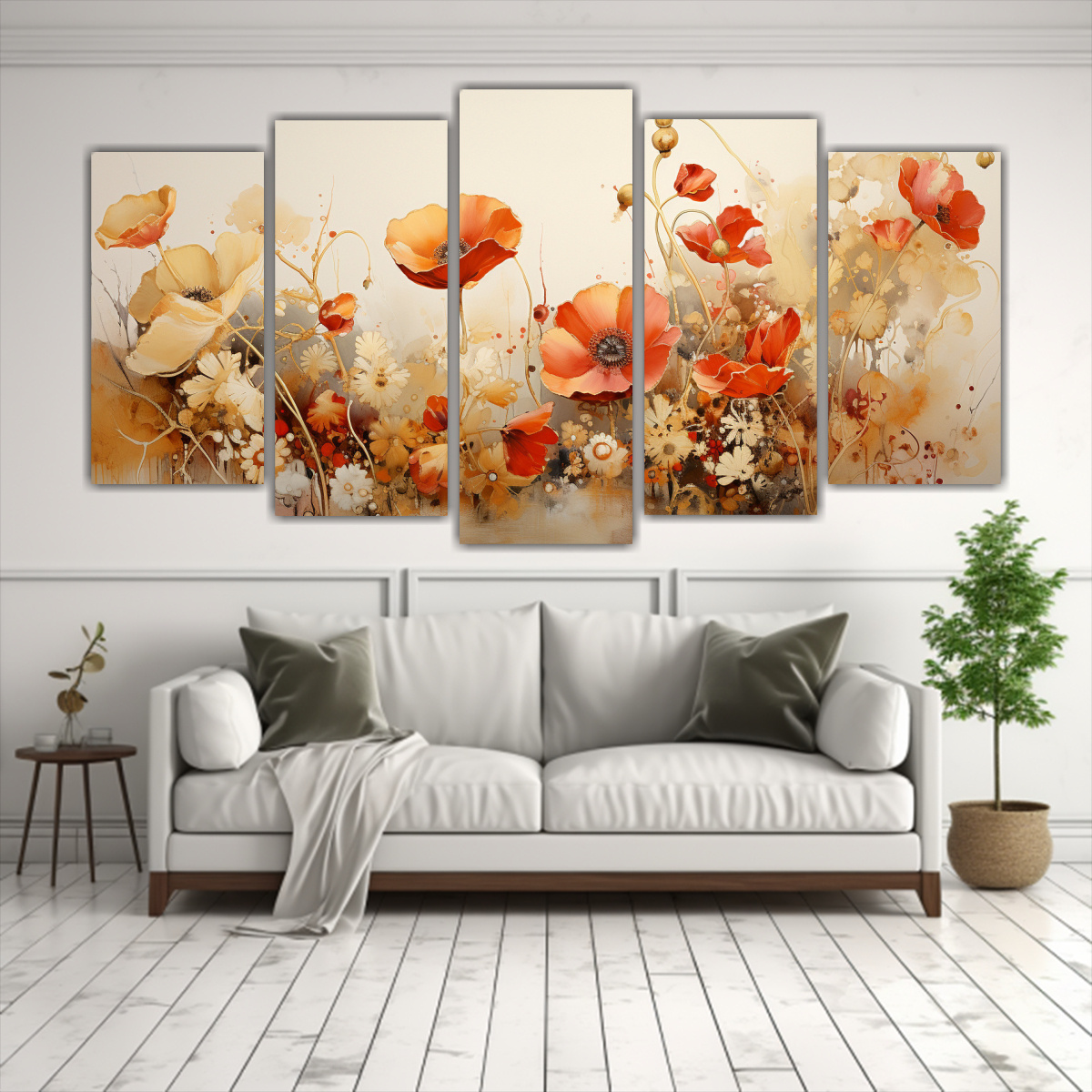 Pintura Acuarela Abstracta De Flores Amarillas: Set 5 Artes Forma Intenso A Poppies