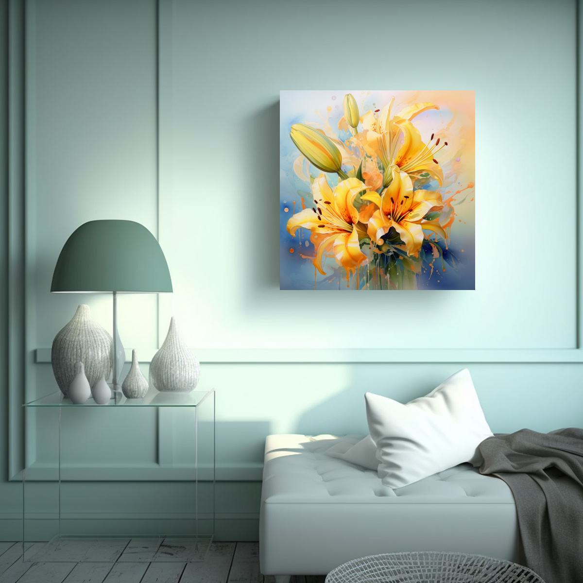 Pintura Acuarela Abstracta De Lirios Amarillos Con Colores Vibrantes Para Decoración