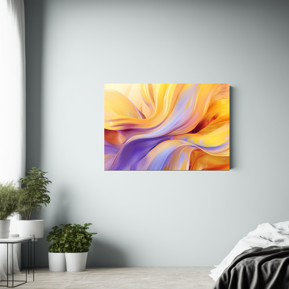 Este cuadro acuarela abstracta es perfecto para aportar energía y vitalidad a tu sala de estar Colócalo en una pared blanca para crear un impacto visual y combínalo con cojines en tonos coral y amarillo para una decoración vibrante y moderna