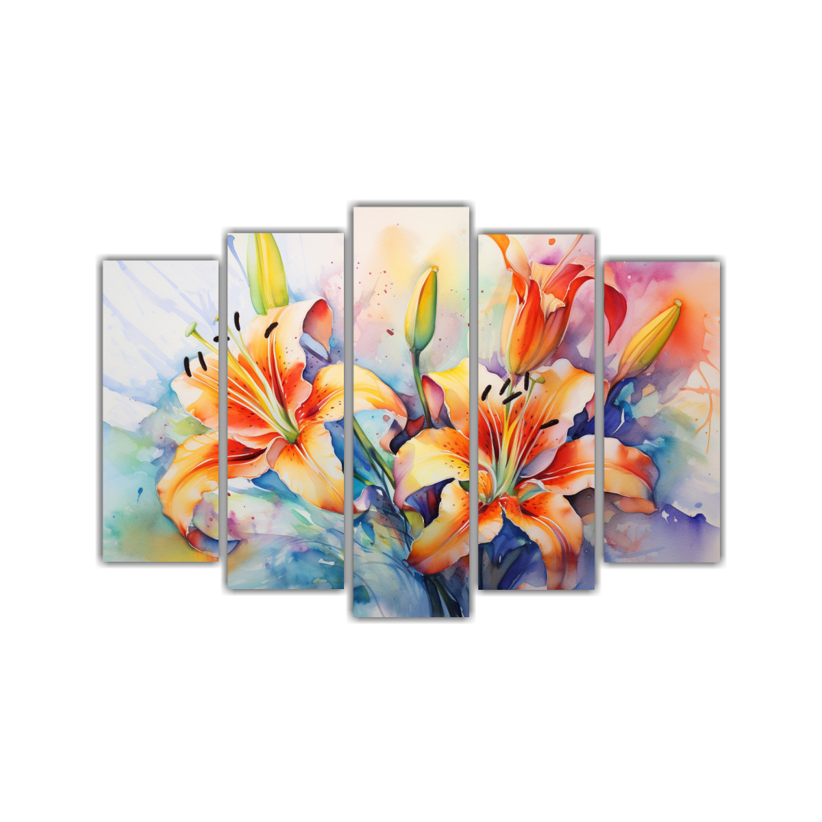 Pintura Acuarela Abstracta Lirios Vibrantes En Elegante Patrón Intenso