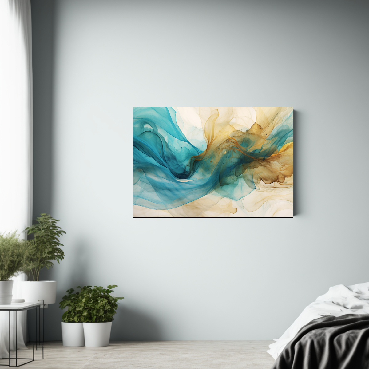 Este cuadro quedará perfecto en el salón o la sala de estar, creando un ambiente fresco y elegante Combínalo con muebles blancos o grises para resaltar su belleza y darle un toque de sofisticación a tu espacio