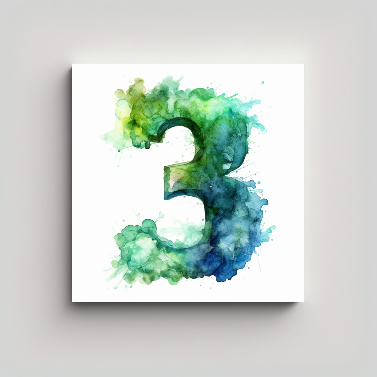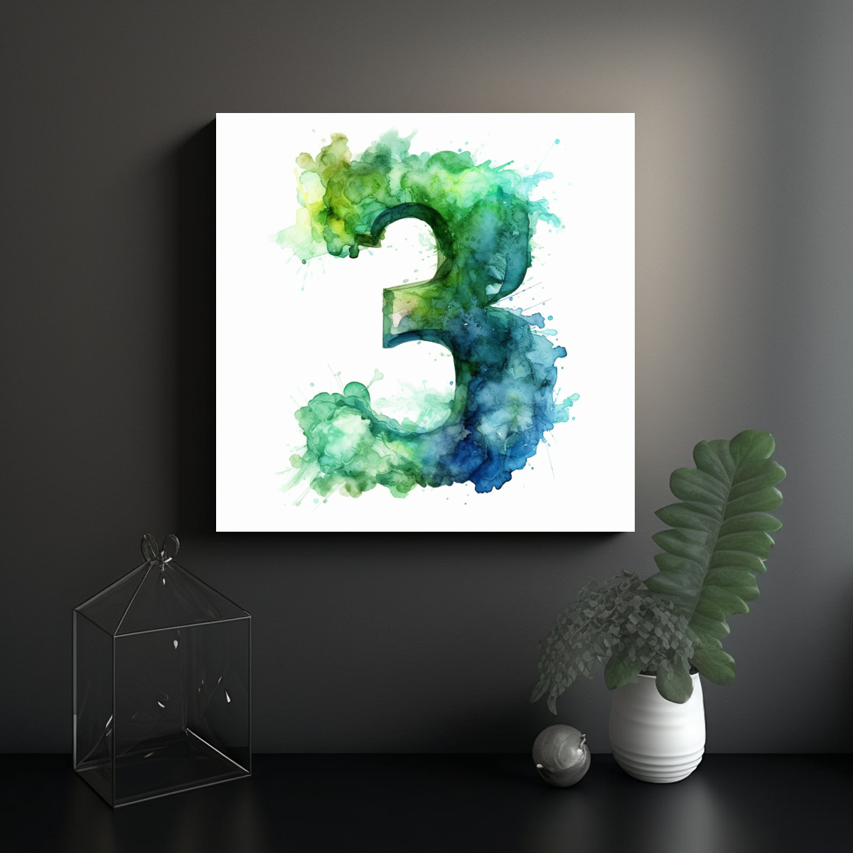 Pintura Acuarela Azul Y Verde Del Número 3 En Cuadro De Alta Calidad