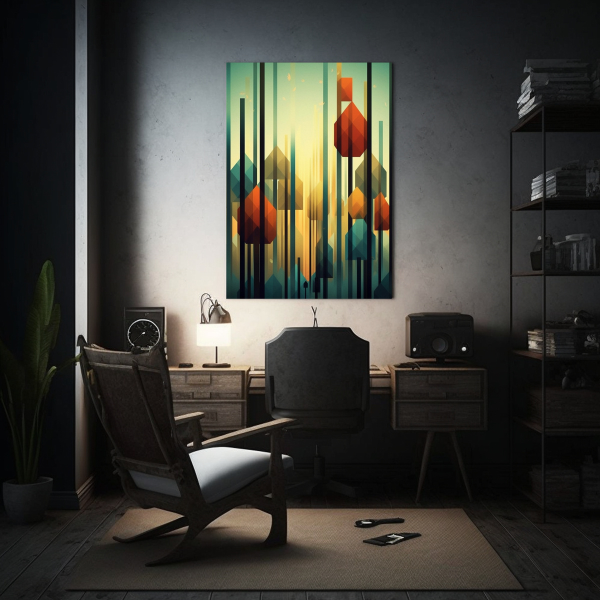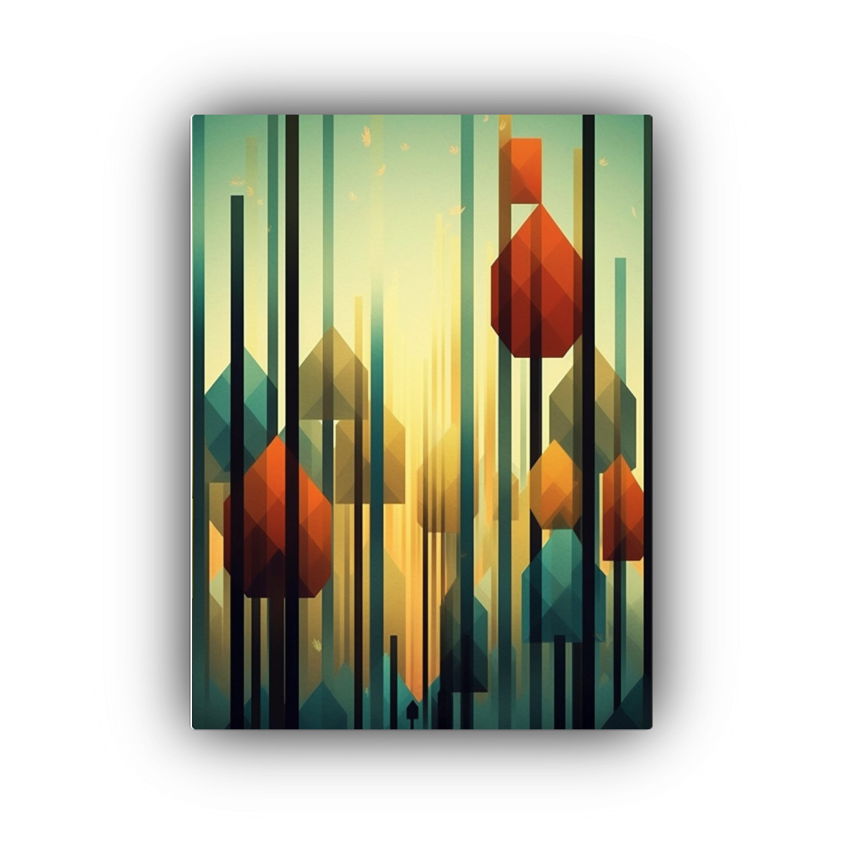 Pintura Acuarela Bosque Minimalista Con Geometría