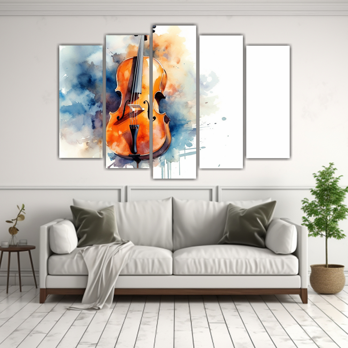 Expresividad beautiful watercolour picture of a cello en azul marino, beige, carmesí y más DecoCuadros ofrece entregas rápidas y gratuitas en Santiago, con envíos express a regiones Calidad y diseño únicos