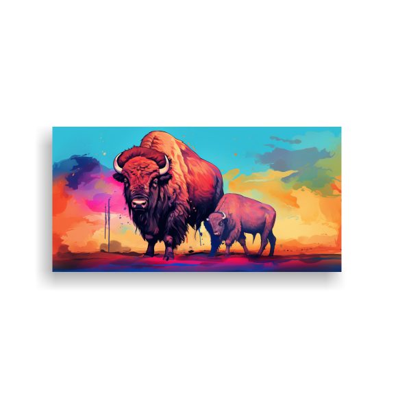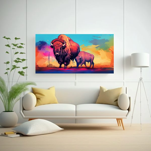 Pintura Acuarela Colorida Búfalo Bisonte Estilo.
