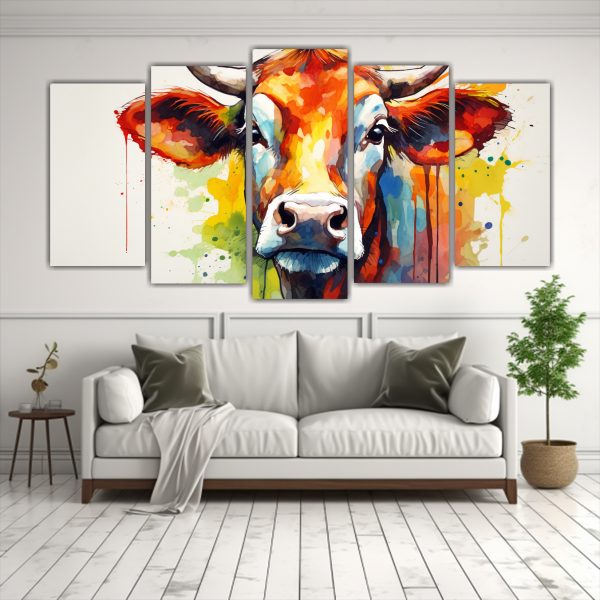 Pintura Acuarela Colorida De Vaca Jersey En Cinco Cuadros Influencia Inspiradora
