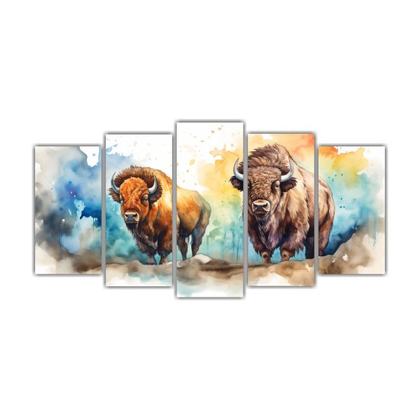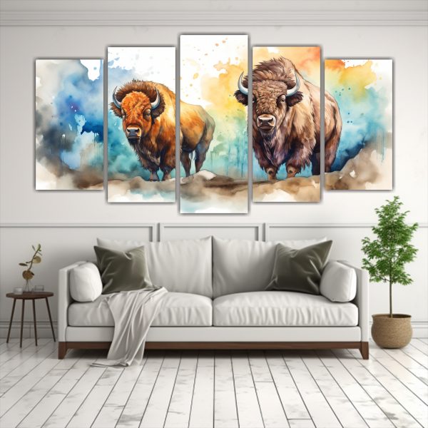 Pintura Acuarela Colorida Surrealista De Bisonte Y Búfalo