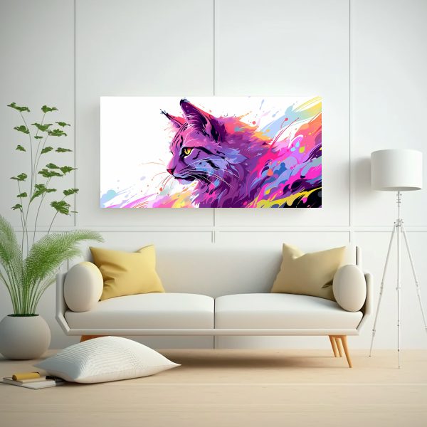 Pintura Acuarela De Belleza Felina Arcoíris Y Morado Neo Pop Arte
