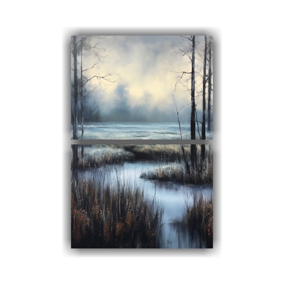 DecoCuadros ofrece el cuadro decorativo Elegancia azul de árboles y hierba en el pantano Impreso en tela de alta calidad con bastidores de madera Los colores plateado, azul marino grisáceo y gris le darán un toque elegante a tu espacio Aporta frescura y calma con esta pintura acuarela Envío rápido y gratis en Santiago y envíos express a regiones