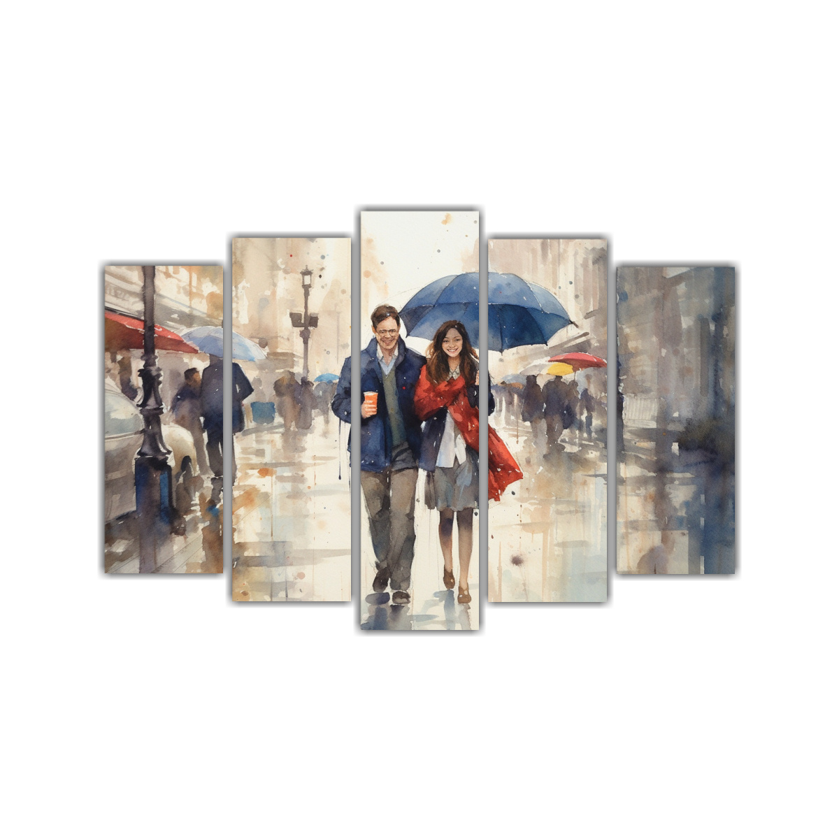 Renueva tu espacio con esta composición aquarelle painting of urban landscape rainy weather Los colores plateado, gris y azul marino grisaceo dan un toque elegante ¡Agrega sofisticación a tus paredes con DecoCuadros!