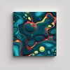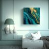 Pintura Acuarela Habitación En Lienzo Metálico Con Tonos Turquesa Y Dorado