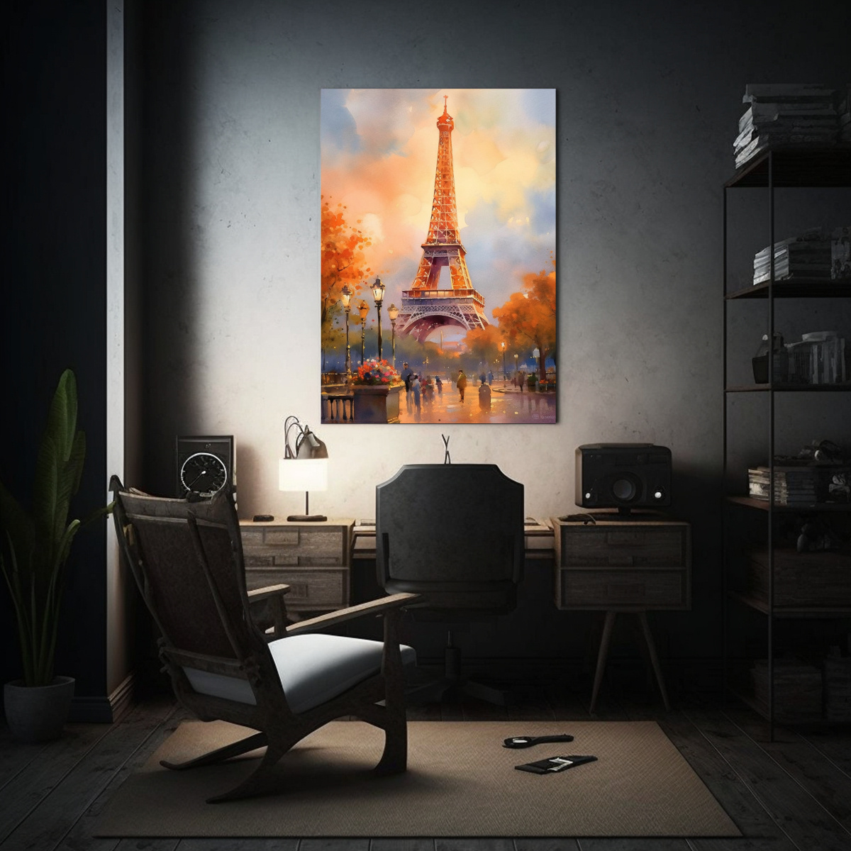 Pintura Acuarela Hecha A Mano De La Elegancia De Las Finas Líneas De Arte De La Decoración De La Vista Cinematográfica De La Torre Eiffel