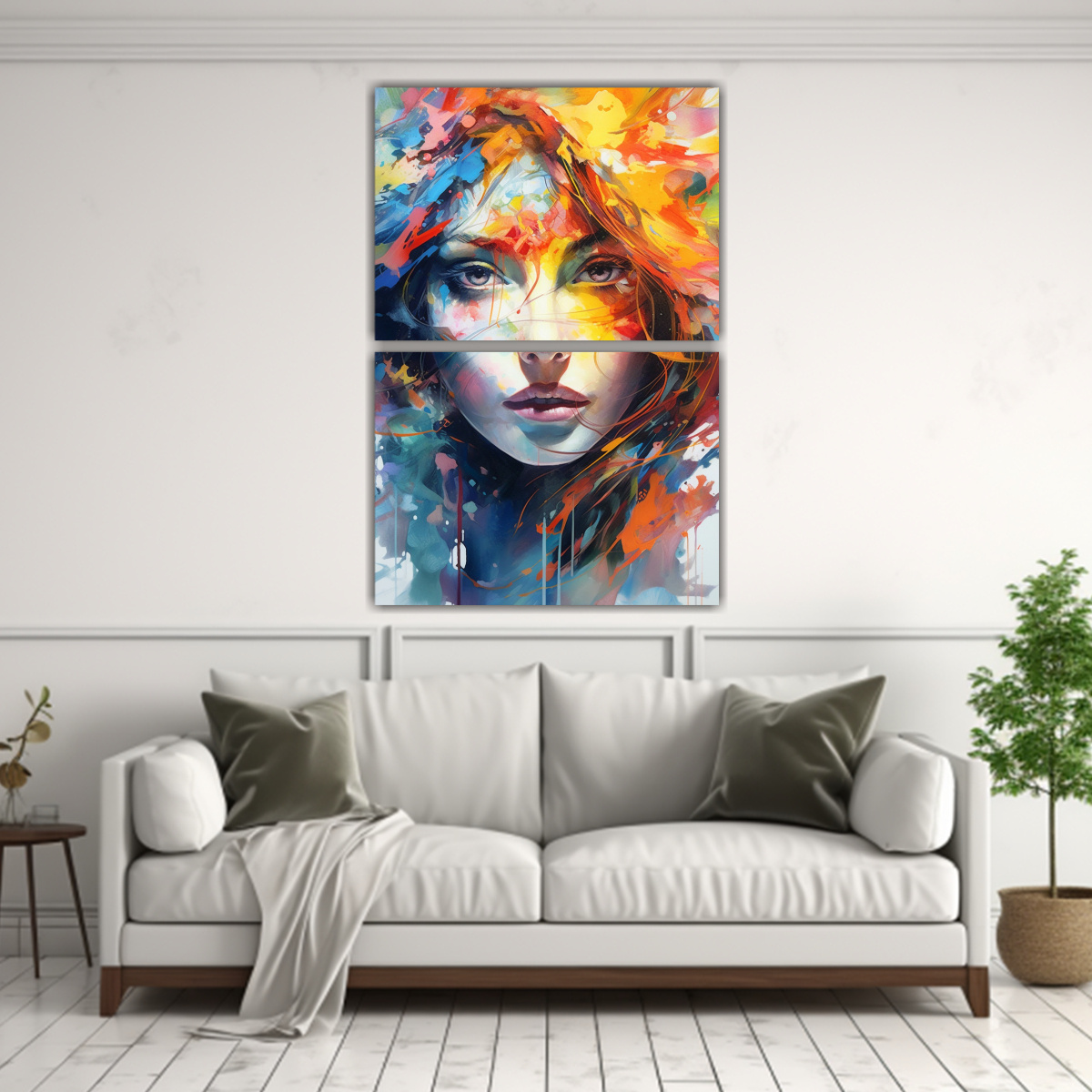 Este cuadro sería perfecto para decorar una sala de estar moderna Puedes colocarlo sobre un sofá gris oscuro, creando un contraste elegante También puedes combinarlo con cojines en tonos turquesa y coral para darle un toque de color adicional Completa la decoración con cortinas en tonos plateados y una alfombra en tonos beige El resultado será un ambiente sofisticado y acogedor que destacará por su estilo único