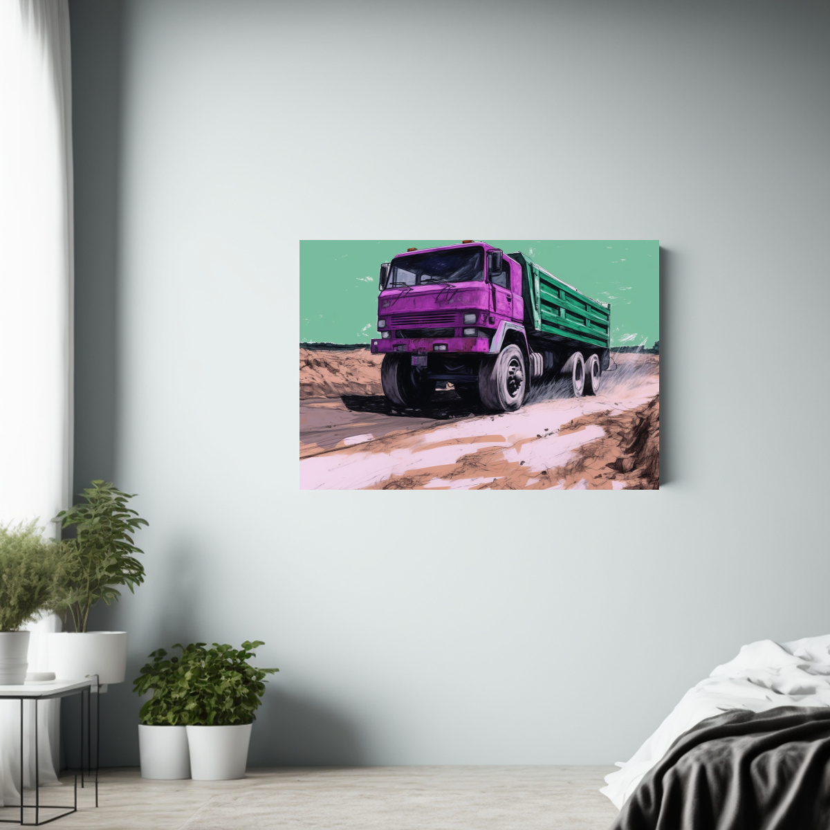 Coloca este cuadro infantil de un camión de tierra en la pared cerca del escritorio de tus hijos para inspirar su creatividad y acompañar sus momentos de juego Combina con muebles en tonos neutros y elementos decorativos en azul para un ambiente armonioso y divertido