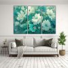 Este cuadro de flores intensas en verde y teal quedará espectacular en el salón principal de tu hogar, sobre un sofá de tonos neutros para que resalte y aporte frescura al ambiente Complementa con cojines en tonos mint y accesorios en plata para un look moderno y elegante
