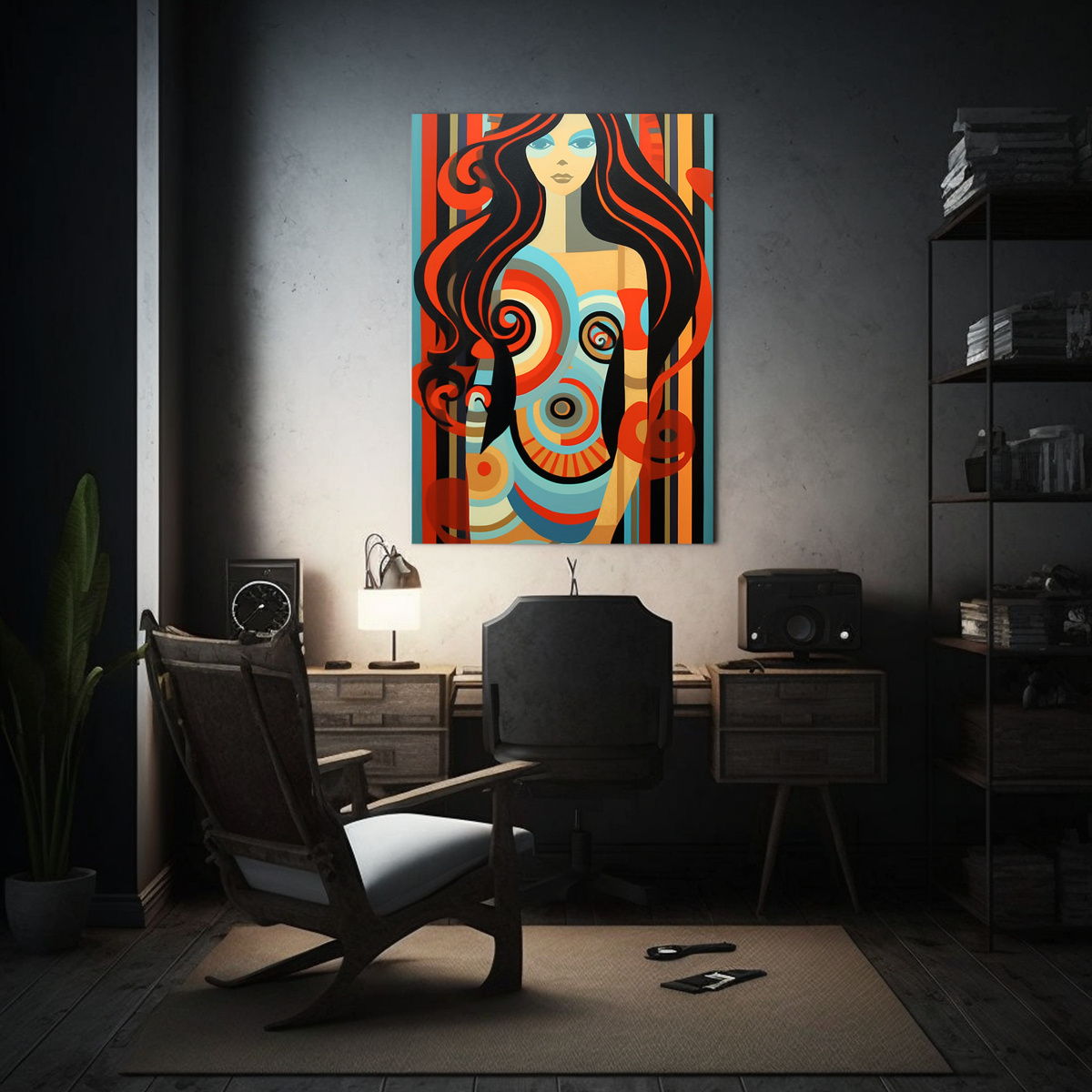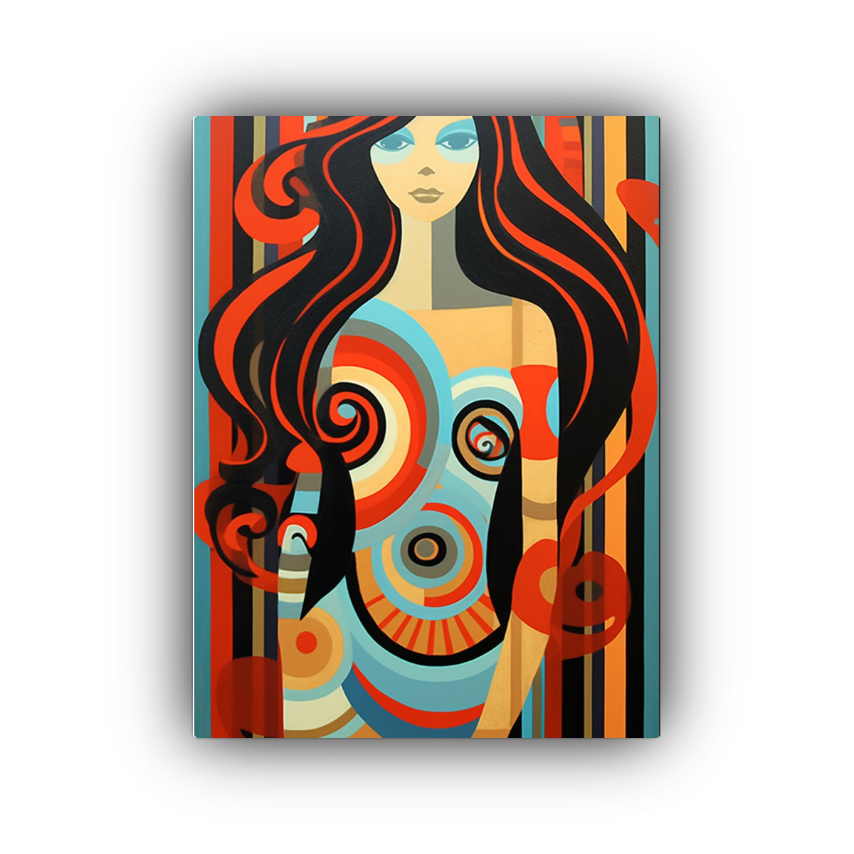 DecoCuadros te presenta este hermoso cuadro decorativo de mujer con cabello fluido, realizado en técnica de acuarela Los tonos turquesa, coral, negro y otros colores vibrantes crean una impresionante textura en esta pintura Impreso en tela de alta calidad con bastidor de madera, este cuadro es perfecto para añadir un toque de elegancia y estilo a cualquier ambiente