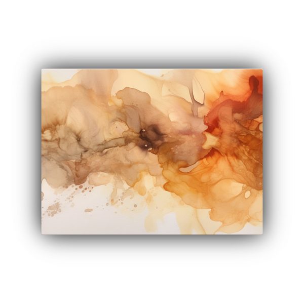Este cuadro de Pintura acuarela papel con manchas marrones agua claras quedará perfecto en tu sala de estar sobre un mueble blanco, creando un contraste moderno y sofisticado Combínalo con cojines en tonos beige y plateado para darle un toque de armonía