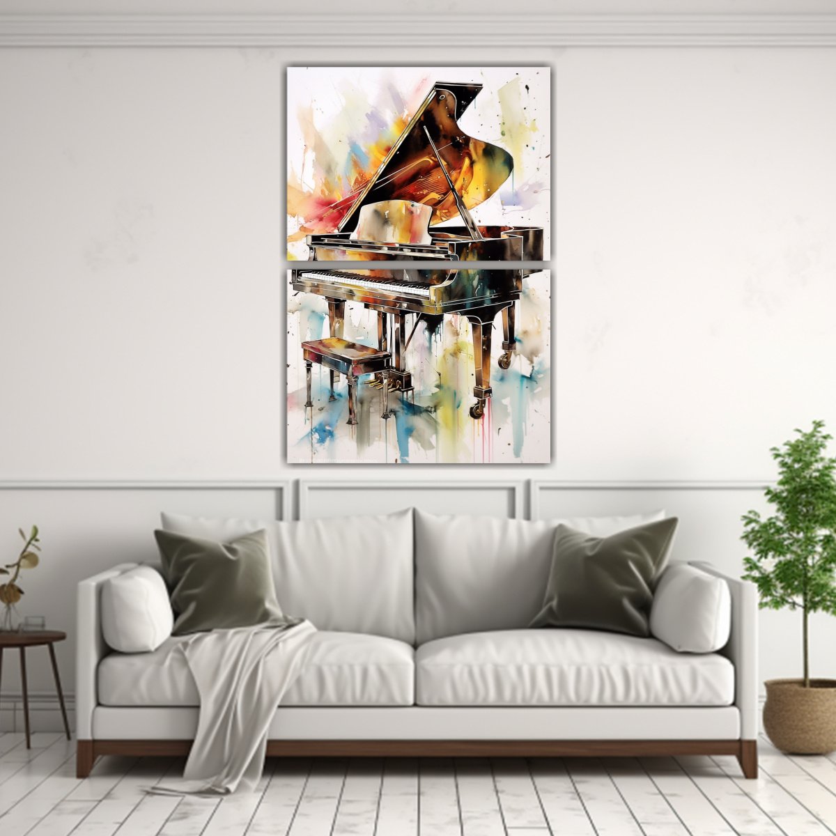 Coloca el cuadro de Pintura Acuarela Piano en tu sala de estar o estudio, junto a un piano o elementos relacionados con la música También se verá fantástico en una habitación con colores neutros, como blanco o gris, para resaltar su belleza y agregar un toque de energía y creatividad ¡Dale vida a tus espacios con este hermoso cuadro!