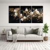 Pintura Acuarela Resistente Con Flores Doradas Y Negras En Lienzo Para Decoración