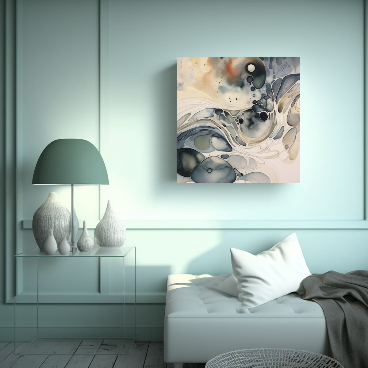 Este cuadro de Pintura Acuarela Surrealista Abstracta Exuberante sería perfecto para decorar tu sala de estar Sus colores plateado, azul marino grisaceo y gris agregarán elegancia y sofisticación a cualquier ambiente Colócalo sobre un mueble blanco o una pared de tonos neutros para resaltar aún más sus tonalidades ¡Deja que el arte transforme tu espacio!