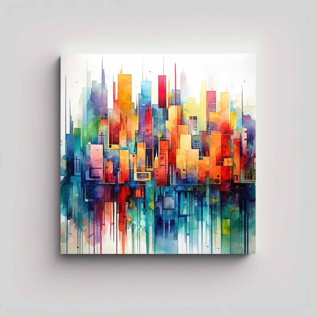 Pintura Acuarela Urbana Abstracta Colorida Metrópolis Arte Decorativo