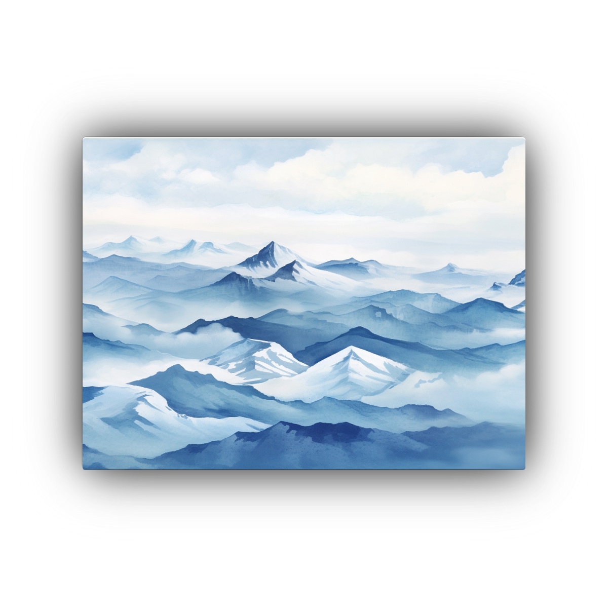 Pintura Acuarela Verde Azul Montañas Blancas Decoración Pared