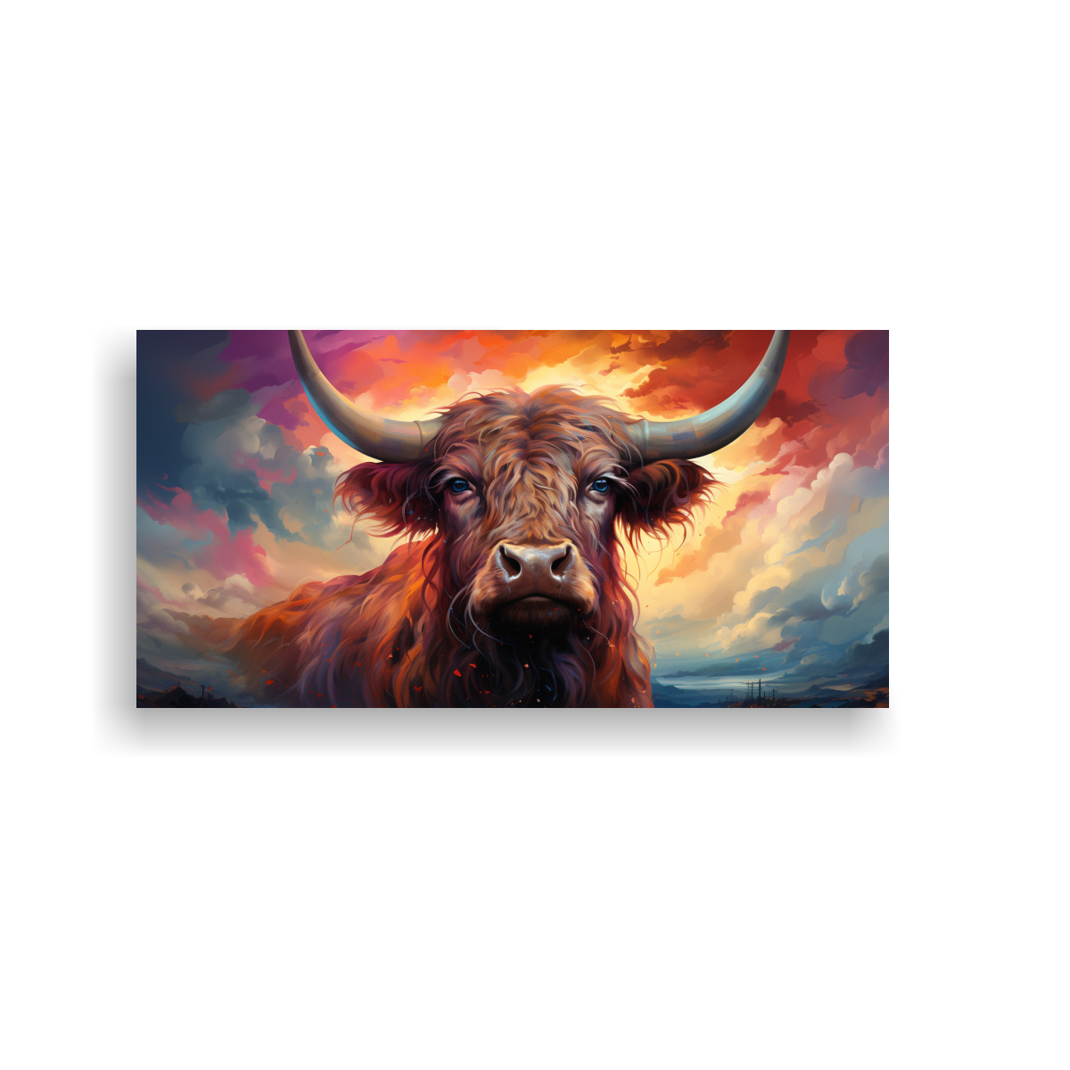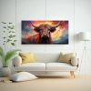 Coloca esta pintura al estilo Estilo óleo de una vaca Angus en una pared blanca para crear un impactante contraste y resaltar los tonos vibrantes Combínala con muebles de madera o negros para un look elegante y moderno ¡Da vida a tu espacio con esta pieza única!
