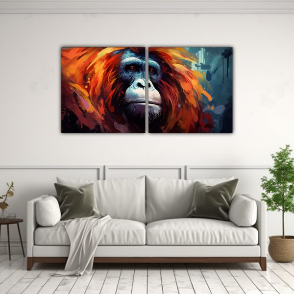 Este cuadro Orangután Colorido encajaría perfectamente en una sala de estar junto a muebles en tonos neutros para resaltar su vibrante paleta de colores También puede ser el punto focal en un pasillo largo e iluminado, agregando calidez y estilo