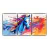 Pintura Al Estilo óleo De Estilo Colorido De Un Caballo Al Cuarto En Tres Lienzos Tela.