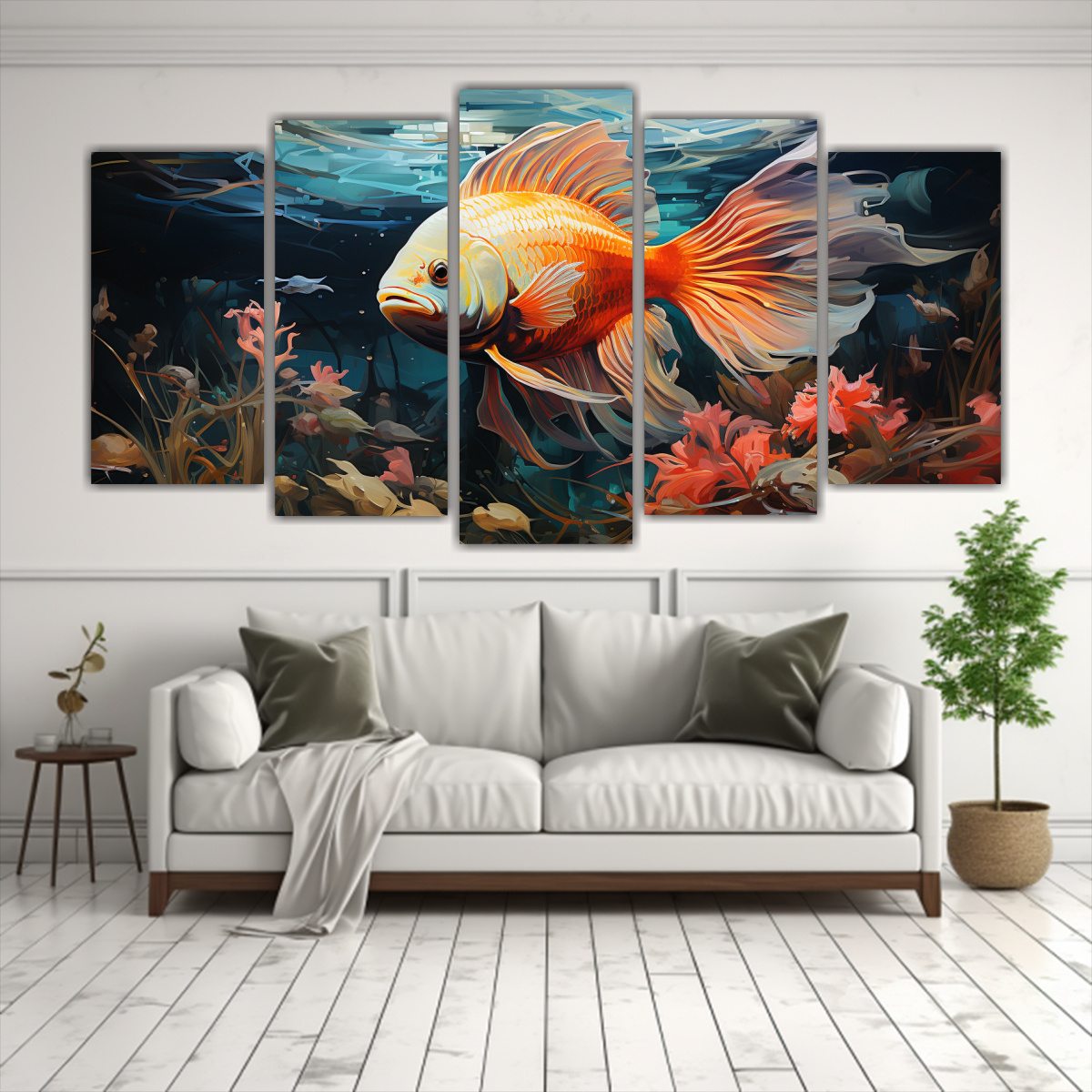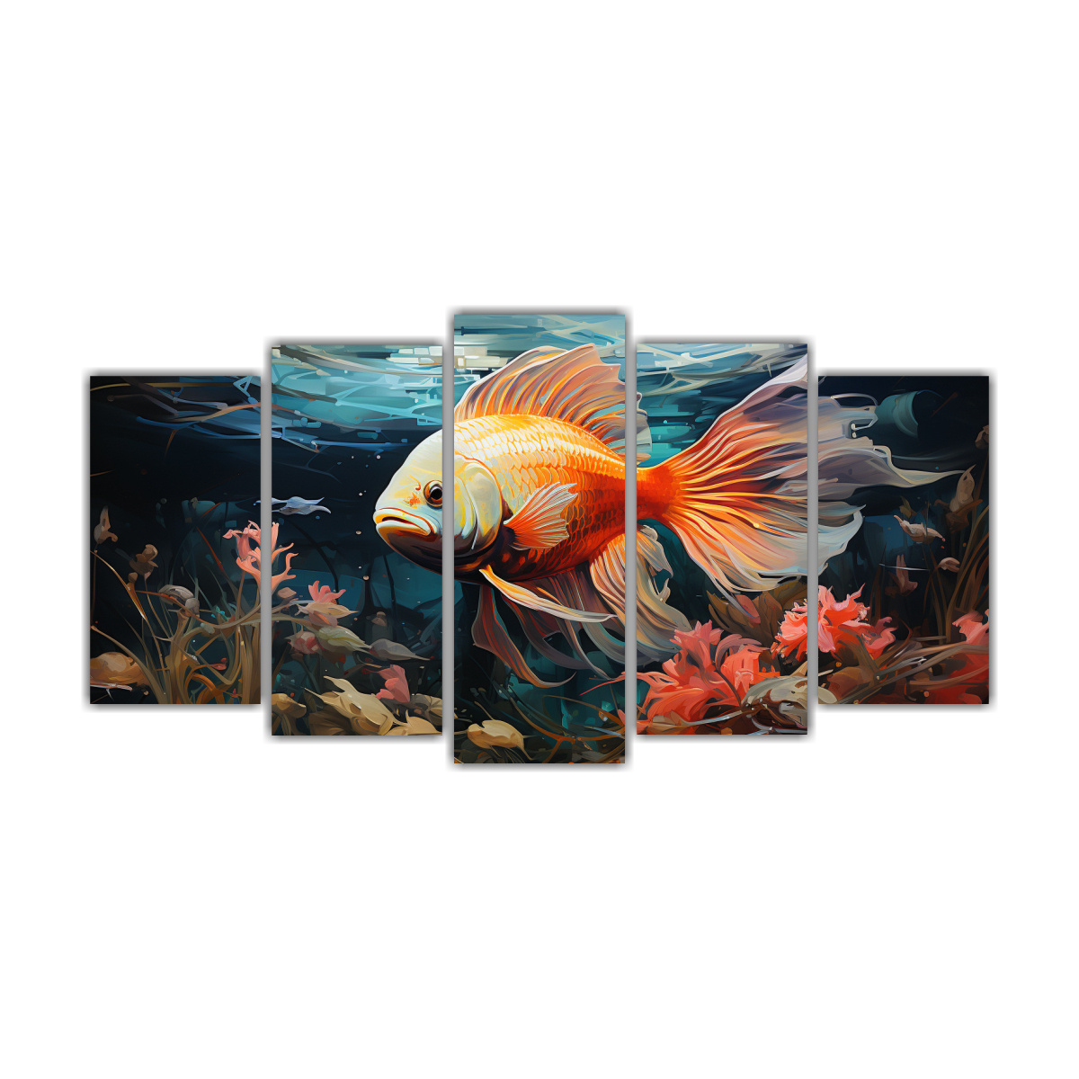 Pintura Al Estilo óleo De Estilo Floral Con ángel Pez Colorido En Cinco Lienzos