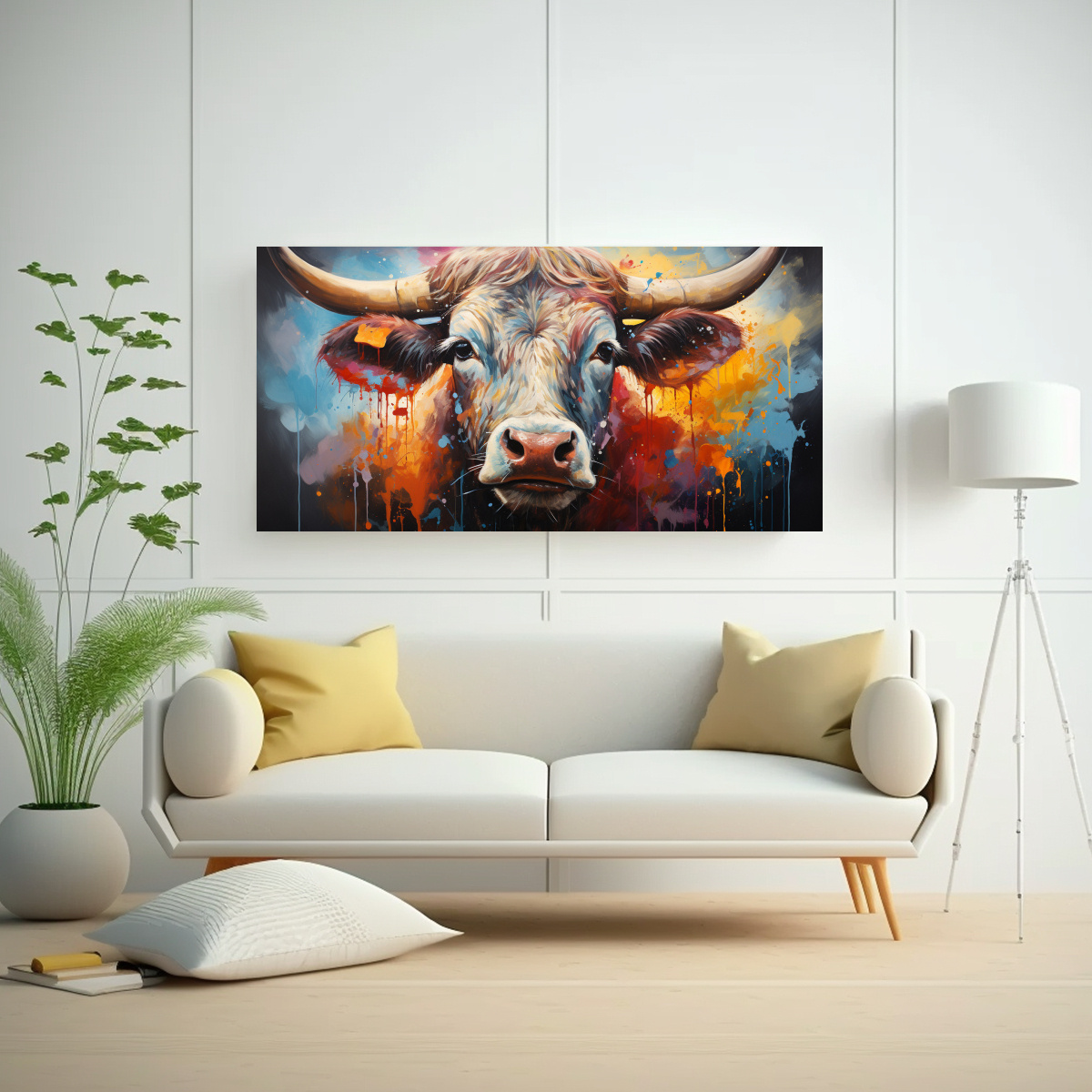 Coloca este cuadro de Vaca en estilo Estilo óleo en tu sala de estar para agregar un toque de color y elegancia Combínalo con muebles en tonos neutros para que se convierta en el centro de atención de la habitación ¡Crea un ambiente acogedor y sofisticado!