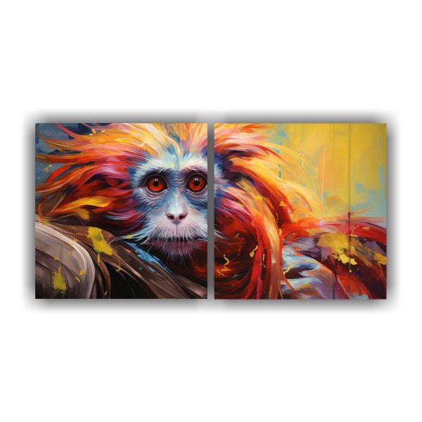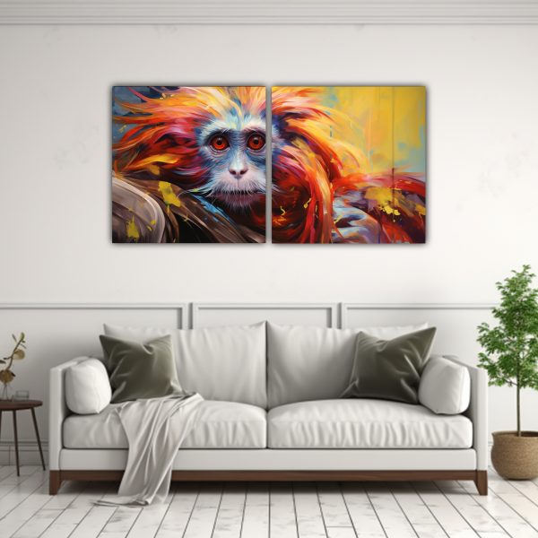 Pintura Al Estilo óleo Estilo Colorido De Mono: Conjunto 2 Artes De Pared Vibrantes