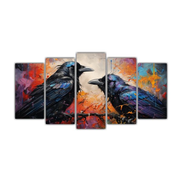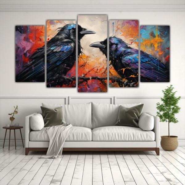 Pintura Al Estilo óleo Estilo Galería Cuervos Y Cuervos Coloridos.