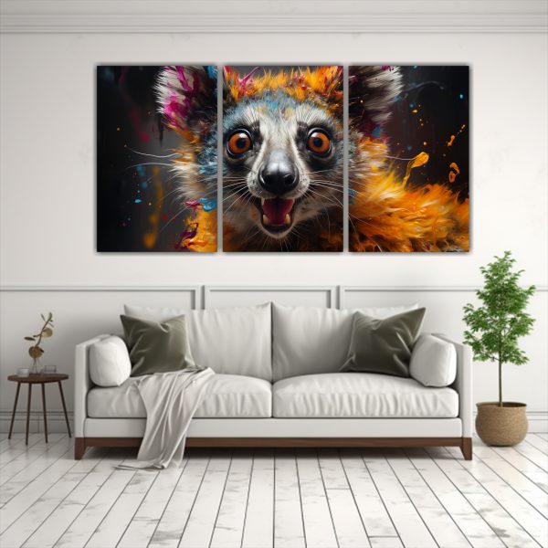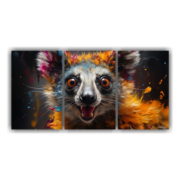Pintura Al Estilo óleo Estilo Galería, Lemúr Pop Art, Tres Lienzos Coloridos