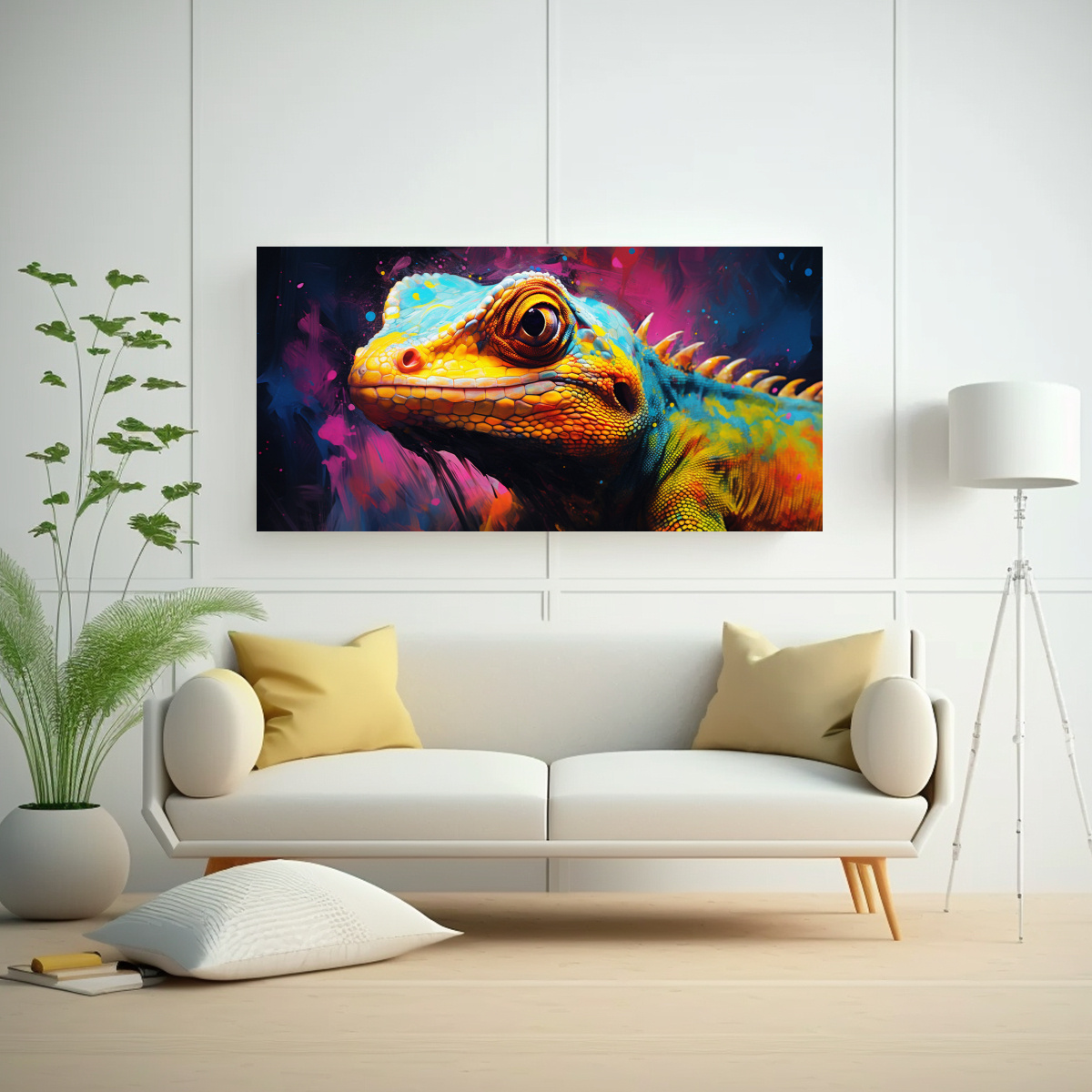Agrega un toque de color y originalidad a tu hogar con este lienzo conceptual de reptil Ideal para decorar salas de estar, dormitorios o espacios creativos Combina perfectamente con muebles de colores neutros para resaltar su vibrante diseño