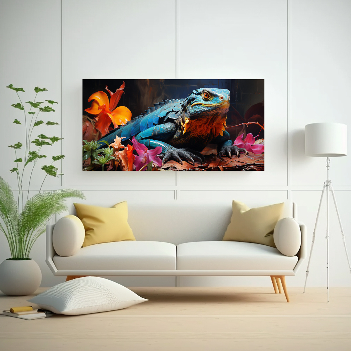 Para realzar la intensidad de los colores del cuadro estilo Estilo óleo escorpión, te recomendamos colocarlo en una pared blanca para lograr un efecto de contraste y permitir que resalte en la decoración Combínalo con muebles en tonos neutros para un look moderno y sofisticado