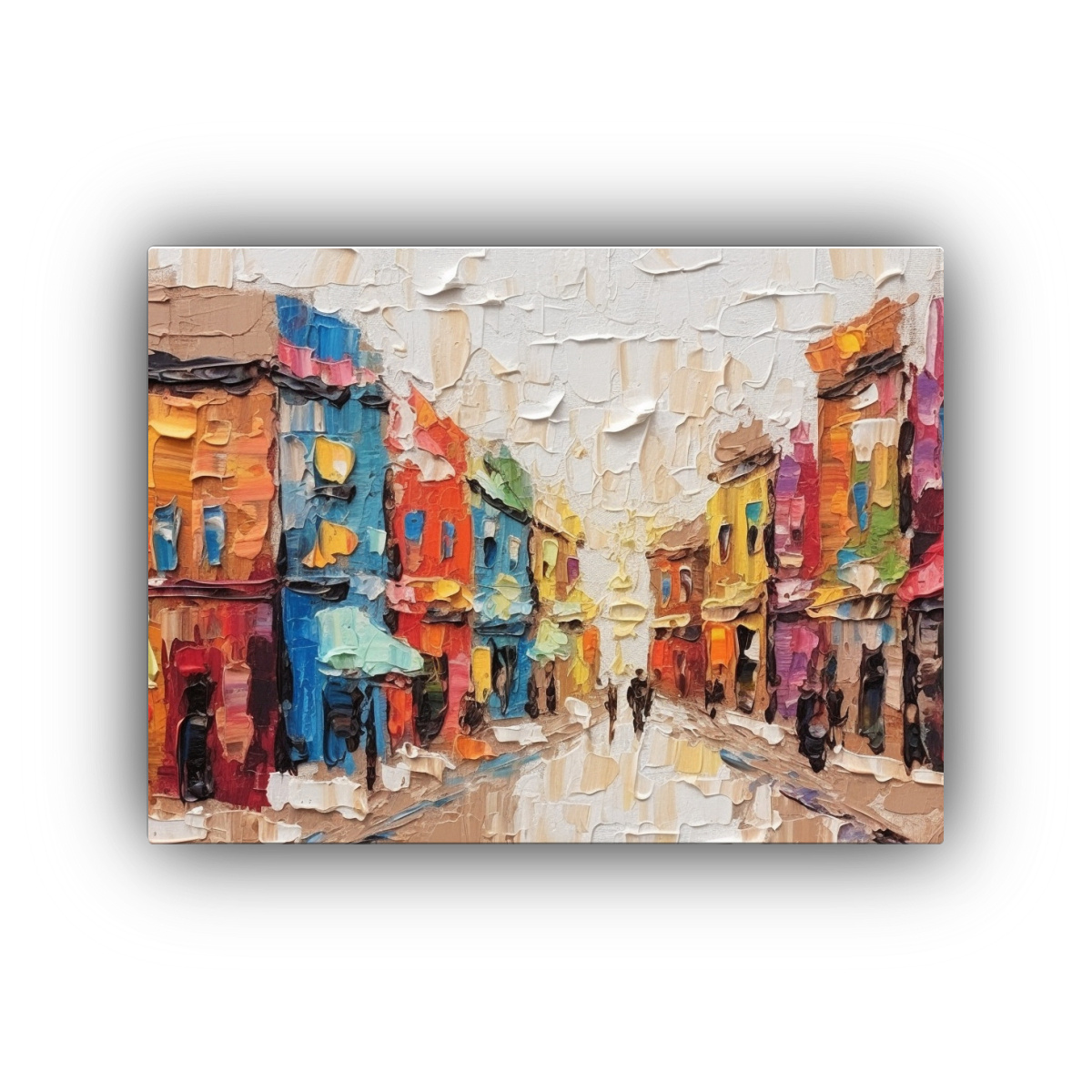 Pintura Al óleo Calle Ciudad Gruesa Y Colorida.
