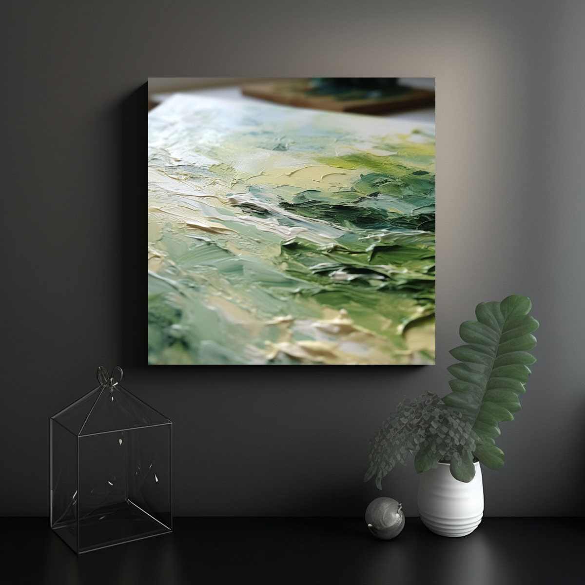 Expresa la Belleza Close-up shot oil painting soft light green calm atmosphere con este cuadro conceptual Dale un toque de elegancia y tranquilidad a tu espacio con nuestra amplia gama de cuadros decorativos ¡Decora con estilo y calidad!
