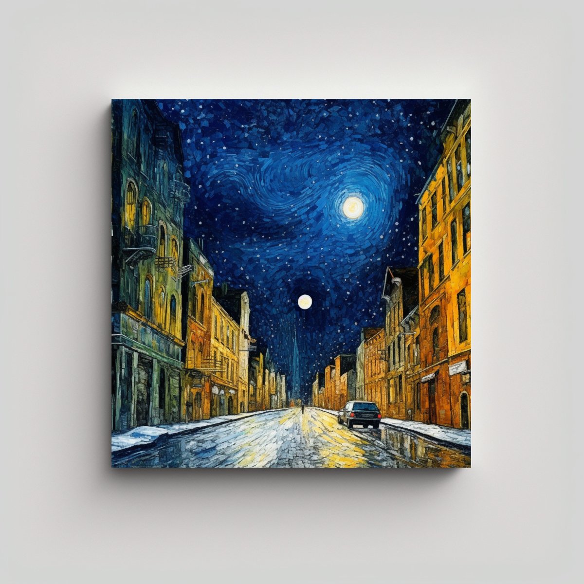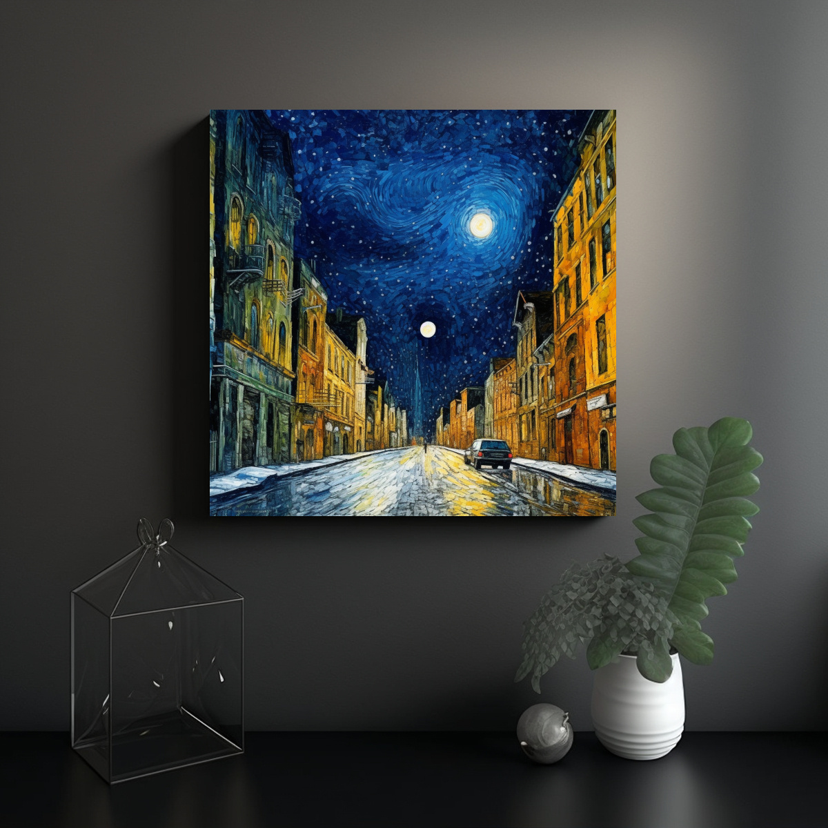 Pintura Al óleo De Calle Nocturna Estilo Van Gogh Para Decoración De Pared.
