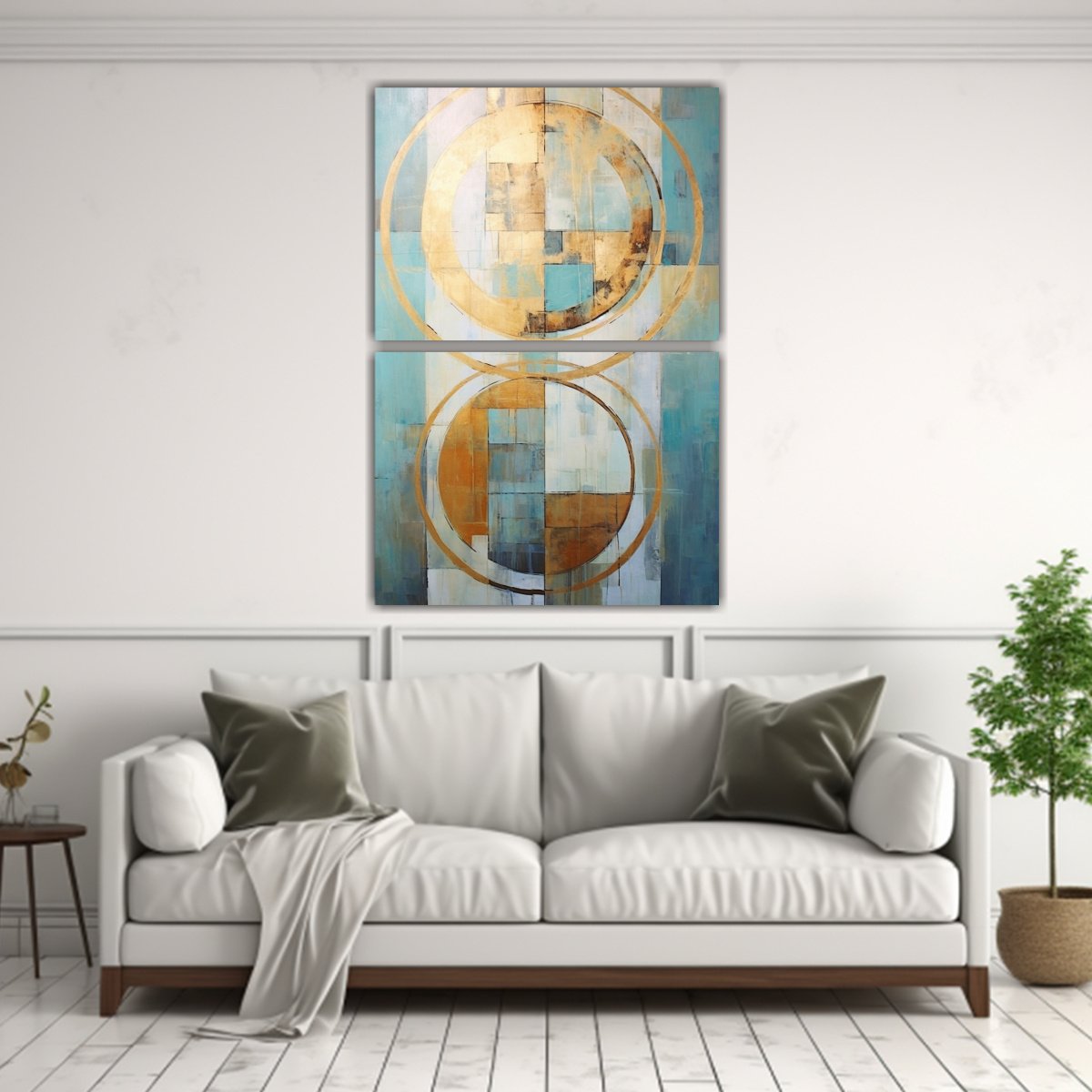 DecoCuadros te ofrece el cuadro ‘Pintura al Estilo Estilo óleo de figuras modernas en círculos en tiempo y espacio, dorado’ para que puedas decorar tus espacios con estilo y elegancia Este cuadro, con su diseño exclusivo, destaca por su impresión en tela de alta calidad con bastidores de madera, que garantizan la durabilidad y resistencia del producto Sus colores azul marino grisáceo, plateado, gris, chocolate, coral y beige combinan a la perfección y le darán un toque moderno a cualquier habitación Aprovecha nuestra excelente relación calidad-precio y nuestras entregas rápidas y gratuitas en Santiago, así como nuestros envíos express a regiones