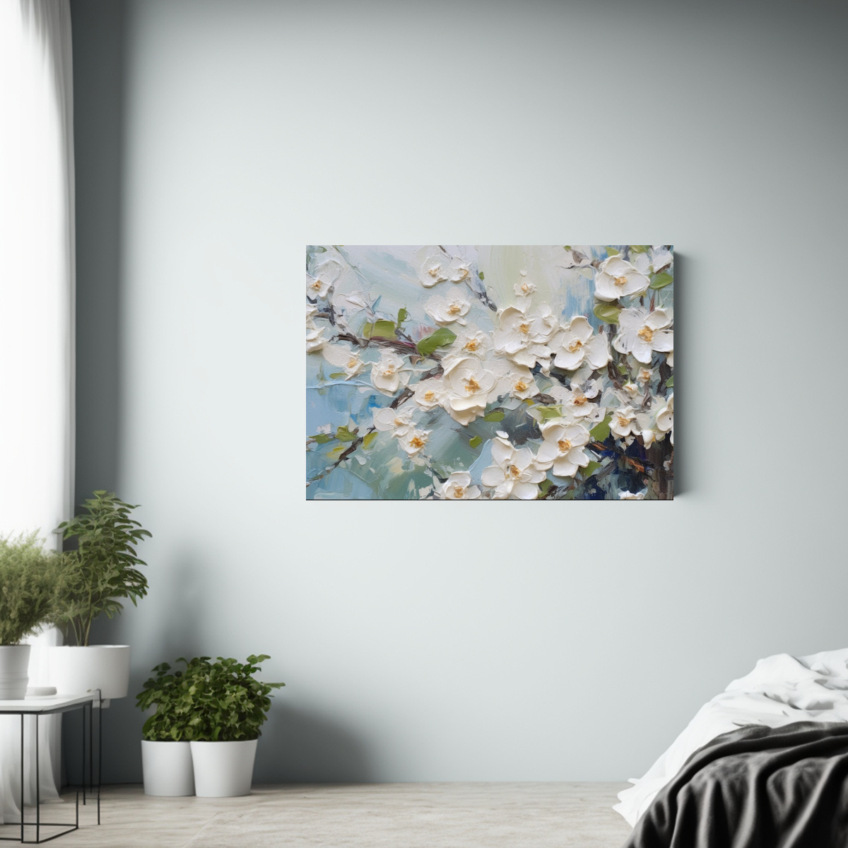 Este cuadro de flores blancas en primer plano quedará perfecto en el dormitorio, la sala de estar o incluso en la entrada Combínalo con muebles en tonos neutros y detalles plateados para crear un ambiente sofisticado y armonioso en tu hogar
