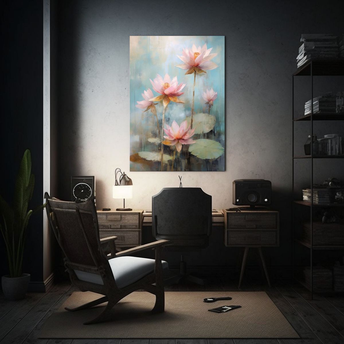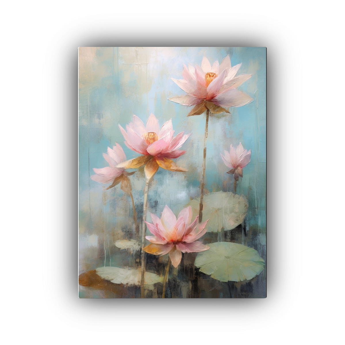 Decora tus espacios con el encanto del arte contemporáneo con el cuadro de lotos rosados en decoración actual de DecoCuadros Impreso en tela de alta calidad y disponible en varios tamaños