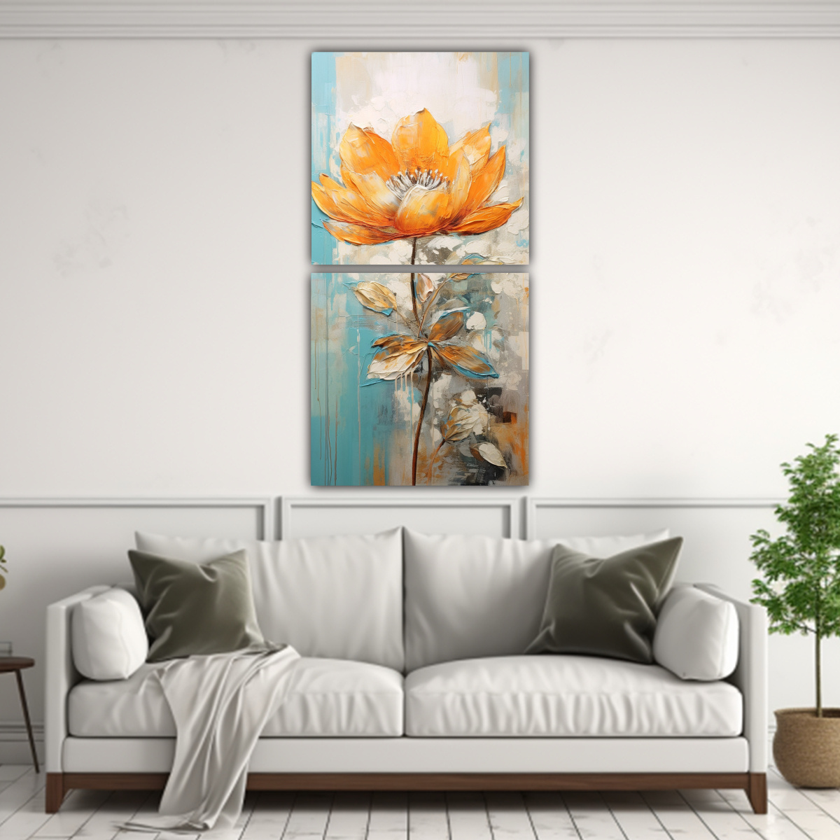 Pintura Al óleo De Loto Naranja Estilo Urbano Sobre Lienzo