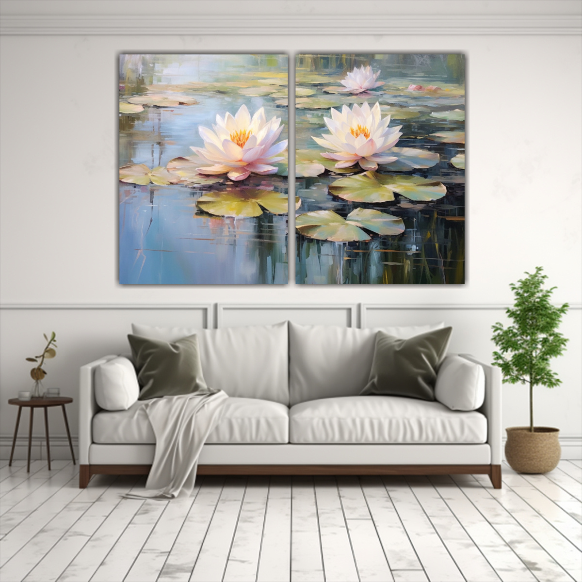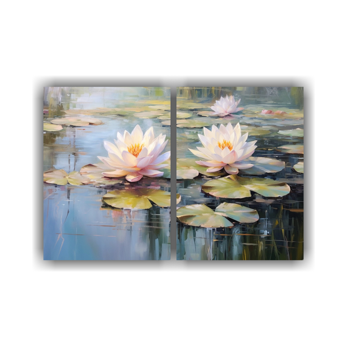 Pintura Al óleo De Lotos En Estanque Sereno, Expresión Simétrica