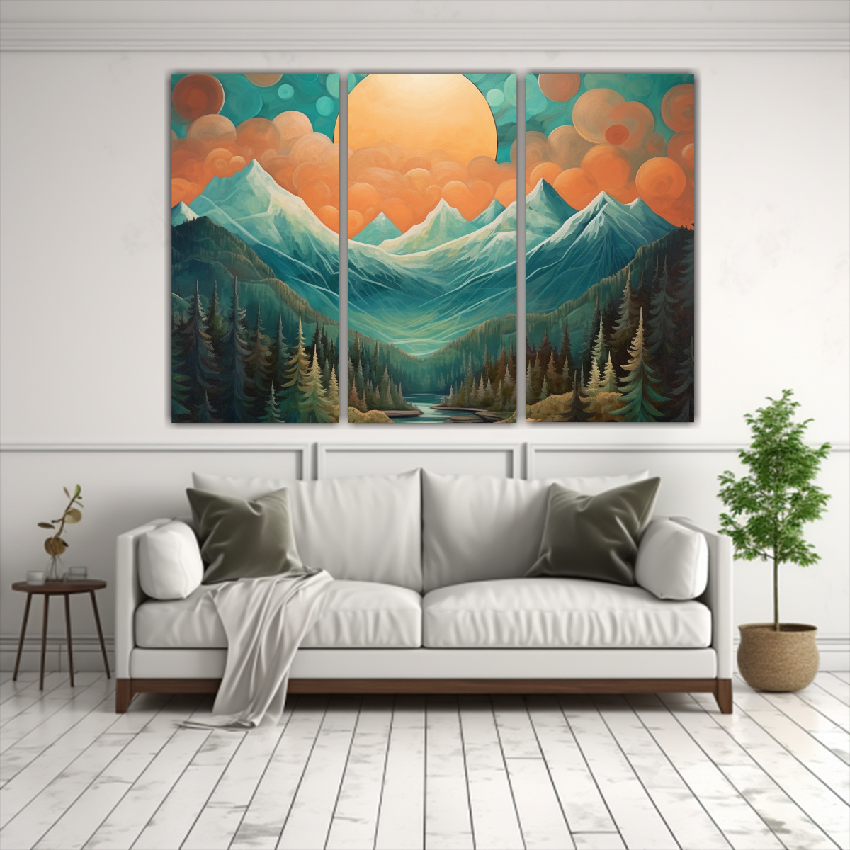 Dale vida a tus paredes con este magnífico cuadro de paisaje montañoso en tonos de verde azulado y tierra Descubre la mejor calidad y los precios más baratos en DecoCuadros Envíos express a regiones