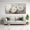 Decora tu hogar con el cuadro ‘Tres Composiciones Cuadro Naturaleza viva a White PEONIES painting on canvas in the style o’ con colores plateado, azul marino grisaceo, gris y dorado Los mejores precios y calidad del mercado Diseños exclusivos y entrega rápida y gratuita en Santiago