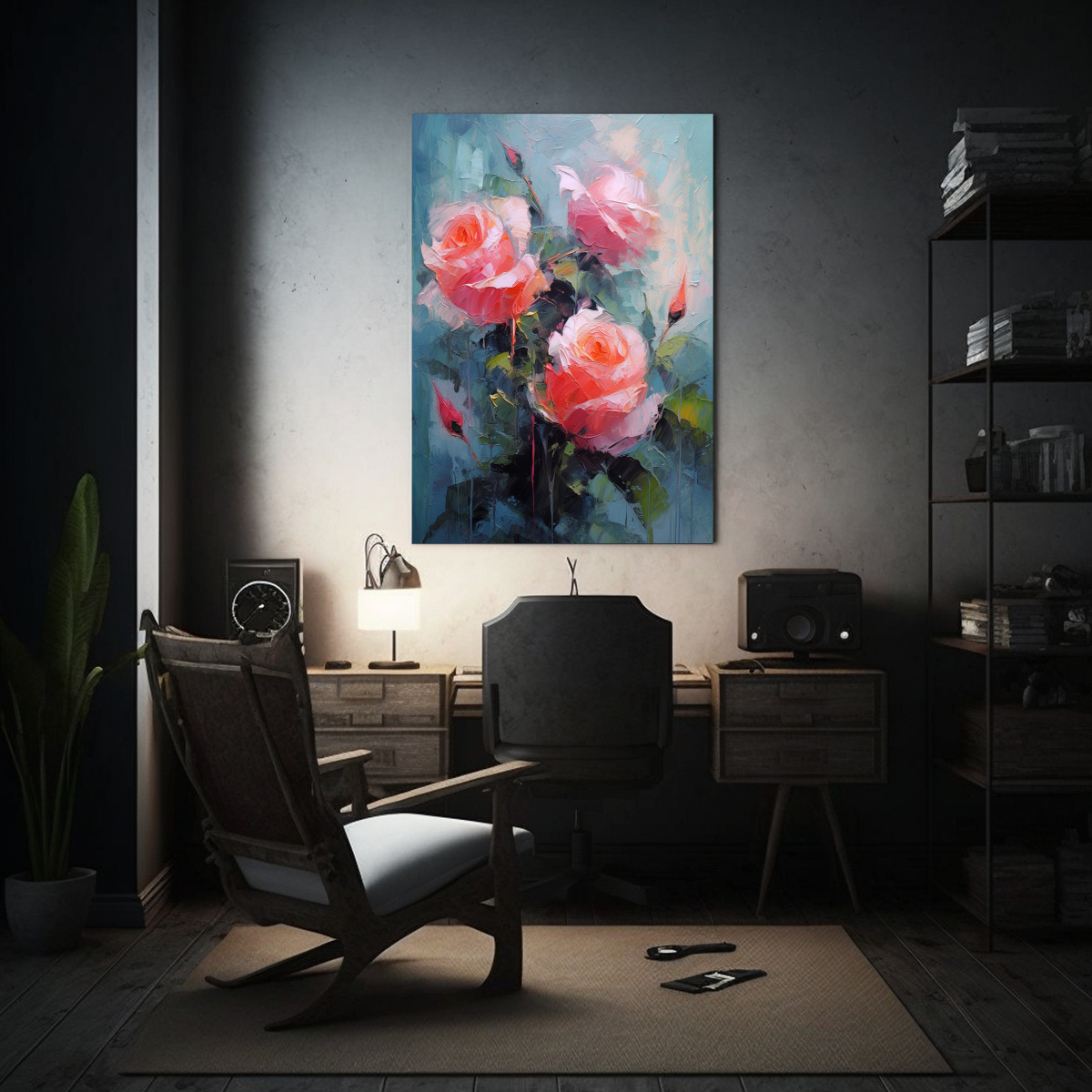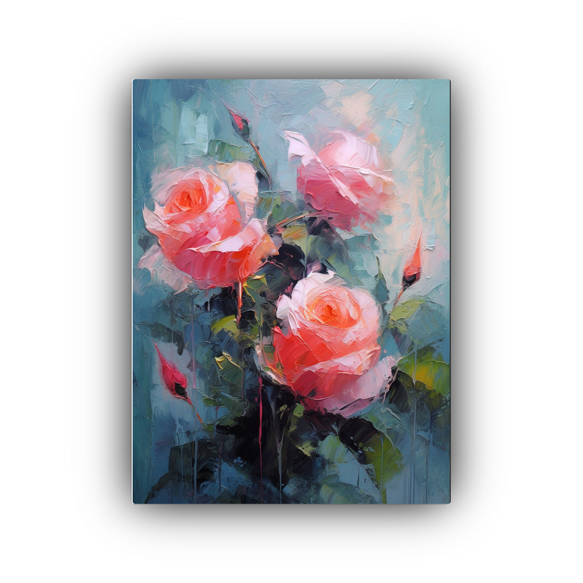 Pintura Al óleo De Rosas En Lienzo Vertical